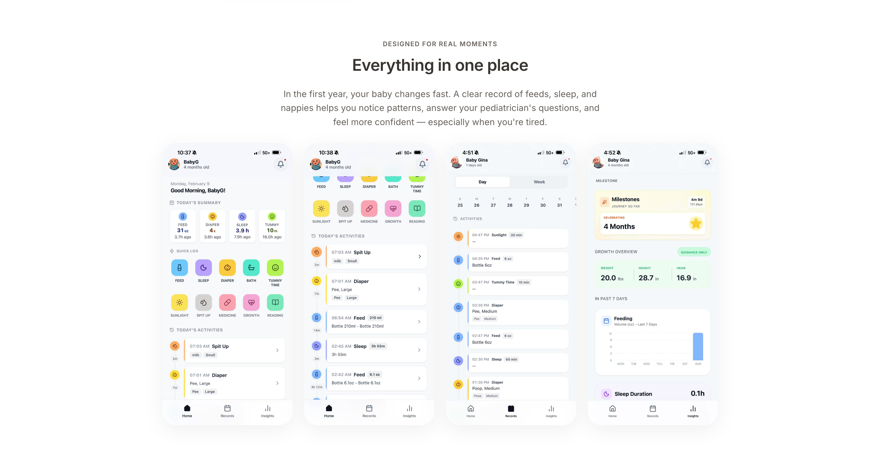 insights across feeding, sleep, and activities.